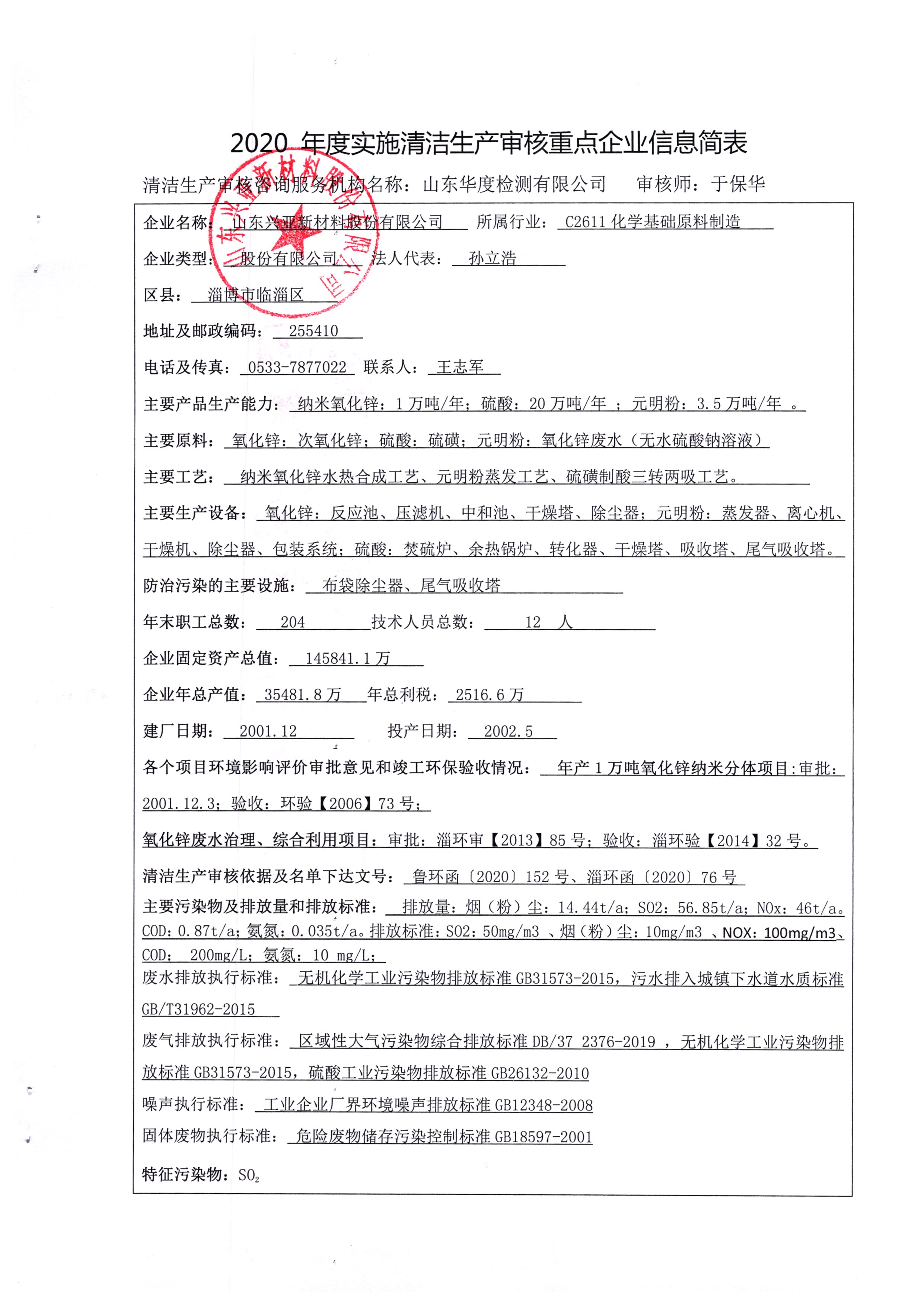 山東興亞新材料股份有限公司廢氣、廢水、噪音檢測(cè)報(bào)告